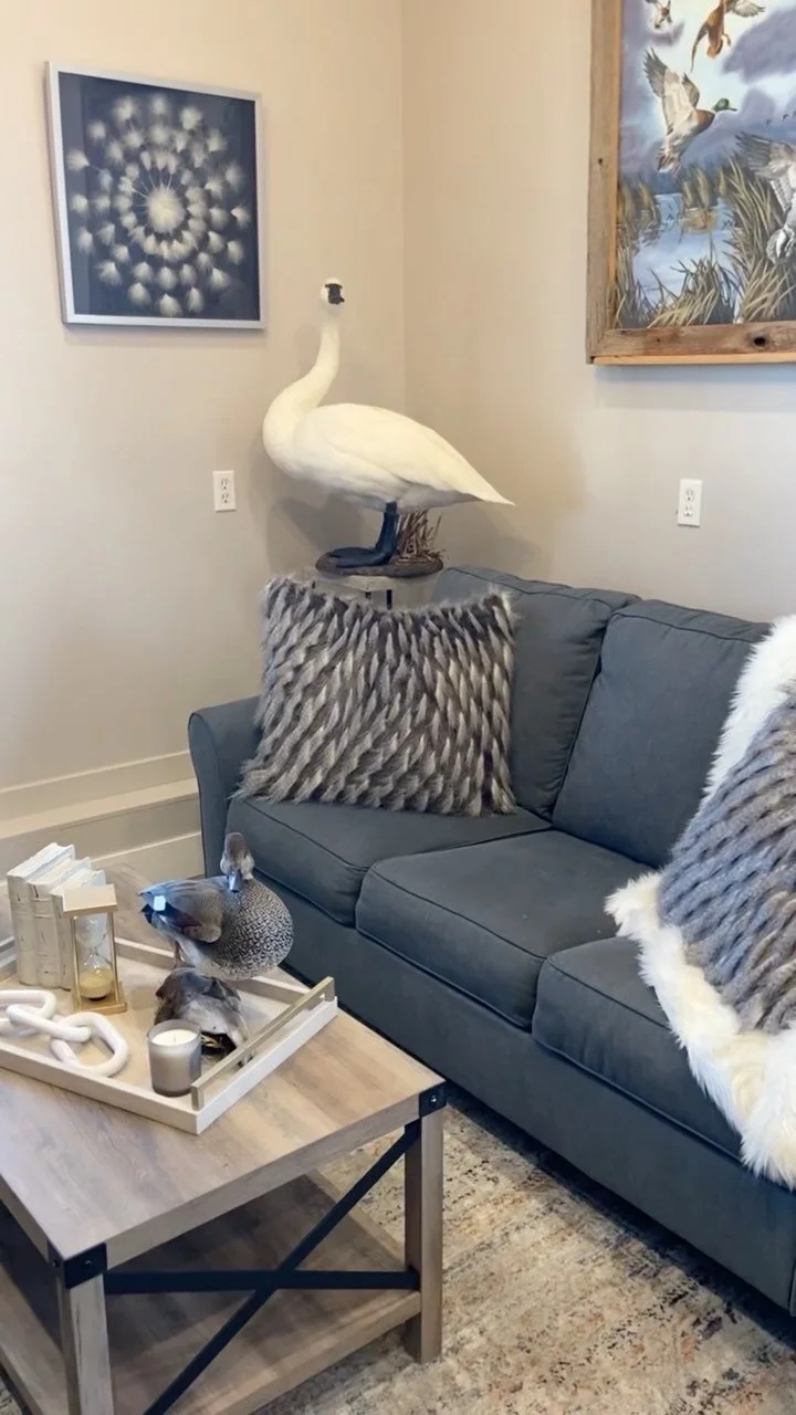 "Before our taxidermy was spread throughout garage, basement, and office. Now our taxidermy art is cohesive in our home. It's amazing to see the difference."